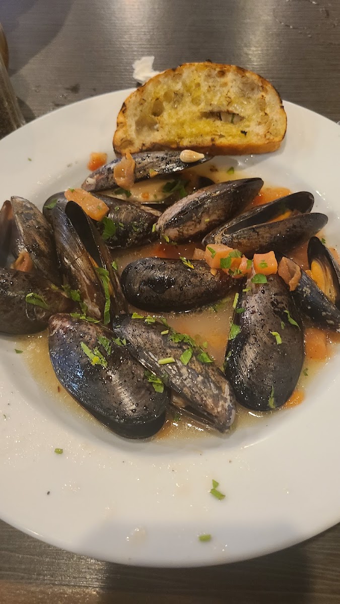 Seafood plays a strong role here, with dishes like shrimp risotto and black mussels earning repeat mentions, alongside hearty pasta options and appetizers including mozzarella sticks and New England clam chowder. Pizza lovers should note that toppings come at extra cost, but the overall pricing stays reasonable. The vibe strikes a balance, avoiding any formality and instead feeling like a dependable neighborhood spot where the food quality steadies expectations.